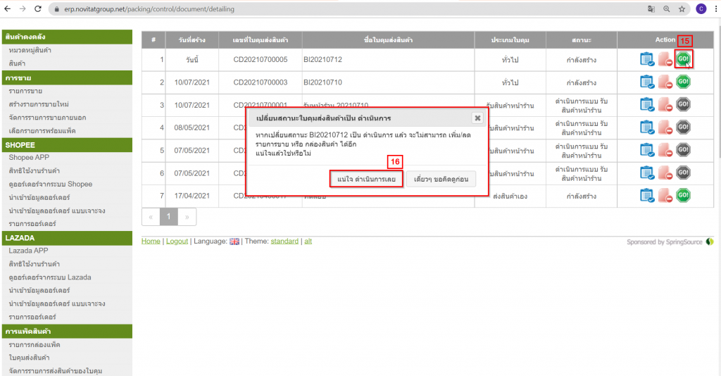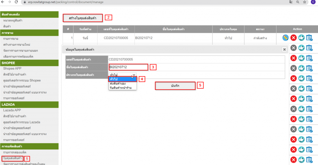 37. กดปุ่ม สร้างใบคุมส่งสินค้า