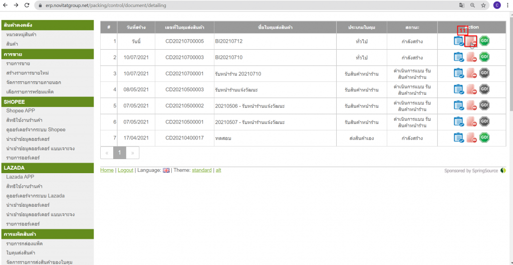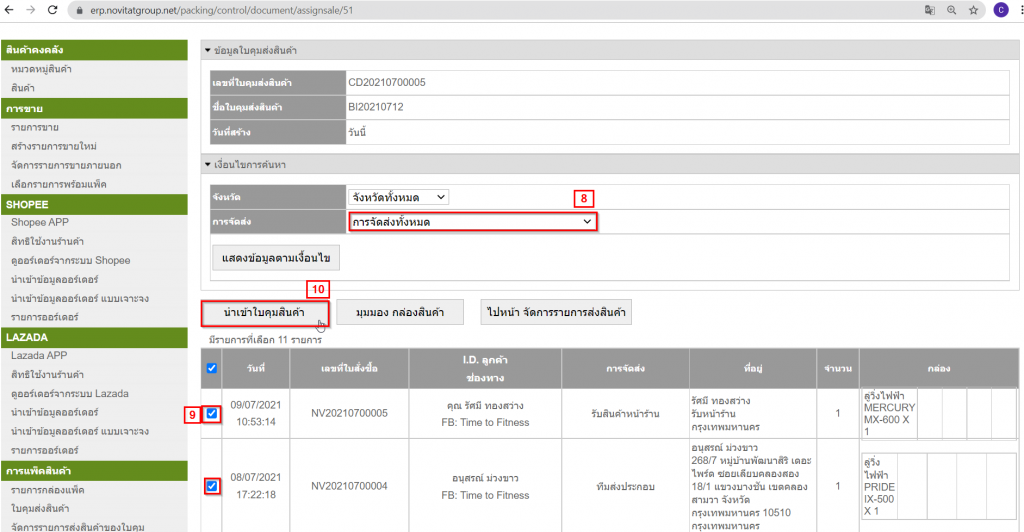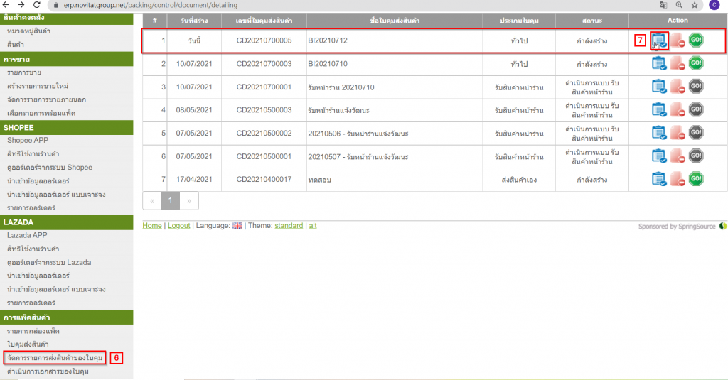 6. เข้าไปที่ จัดการรายการส่งสินค้าของใบคุม