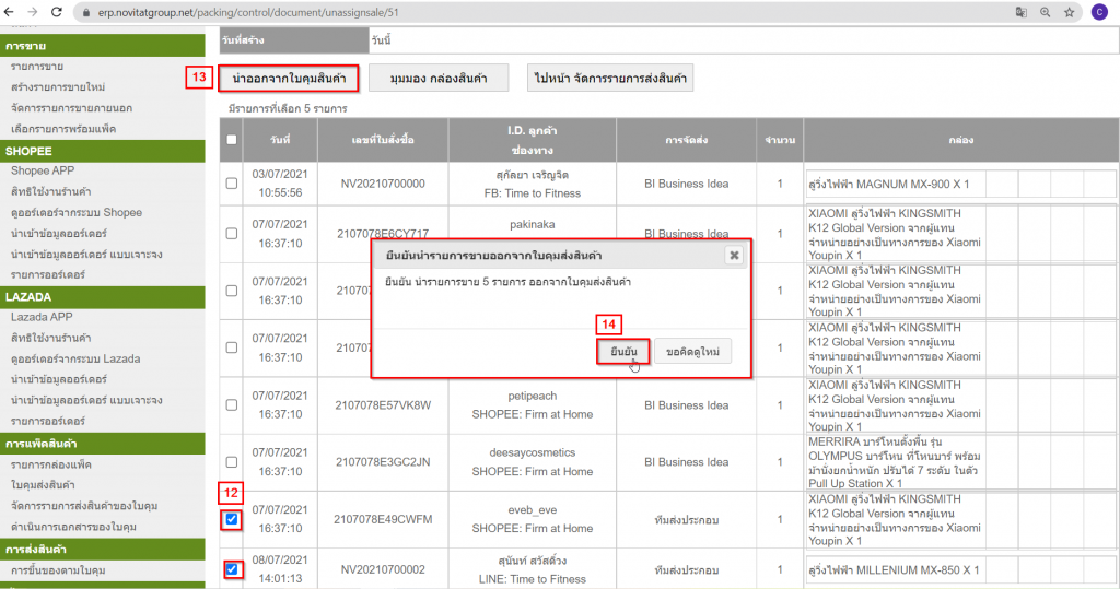 13. กดปุ่ม นำออกจากใบคุมสินค้า