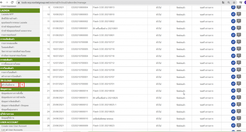 2. กด ไอคอน สีน้ำเงิน (เพื่อสร้างใบสั่งขาย ใน TR Cloud)