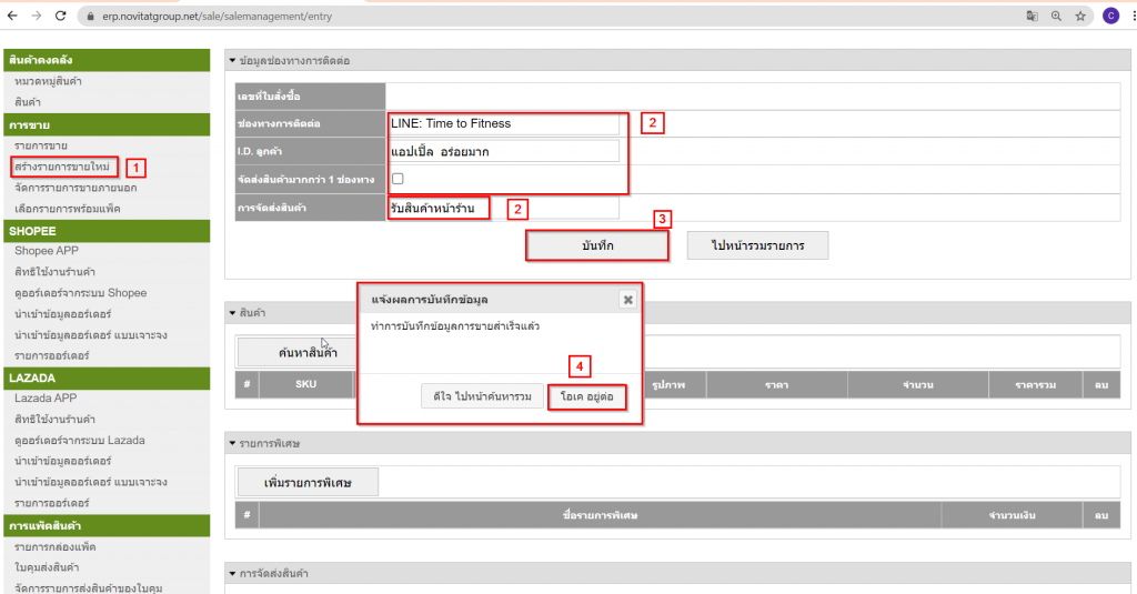1. เพิ่มรายการขาย – แจ้งชำระเงิน