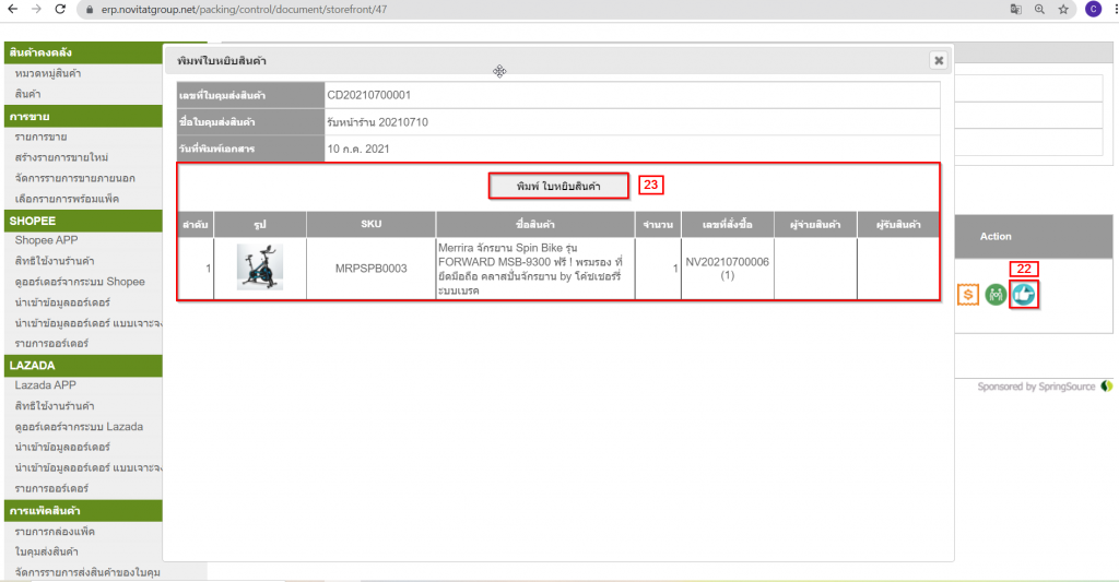 22. กดที่ไอคอน พิมพ์ ใบหยิบสินค้า