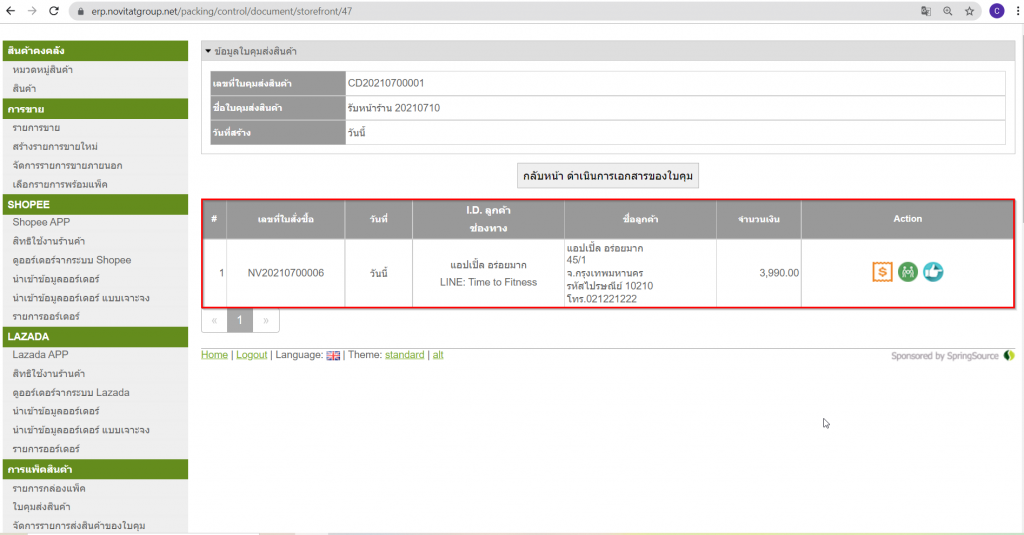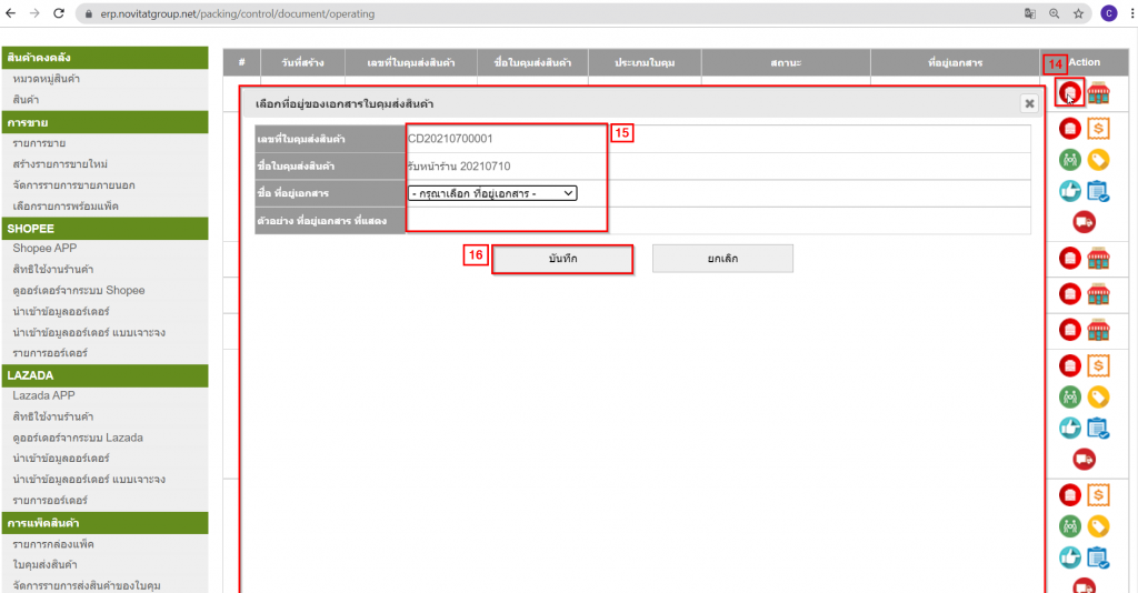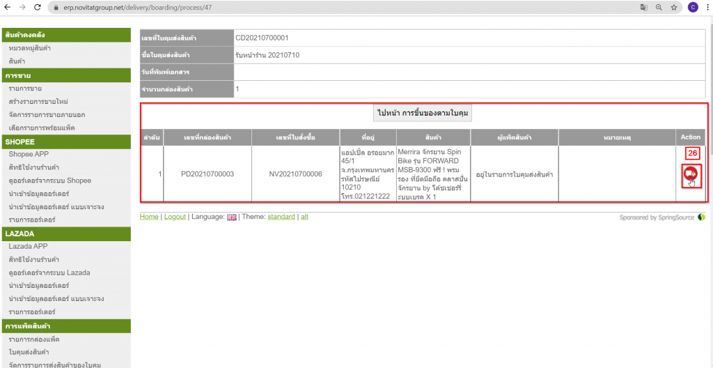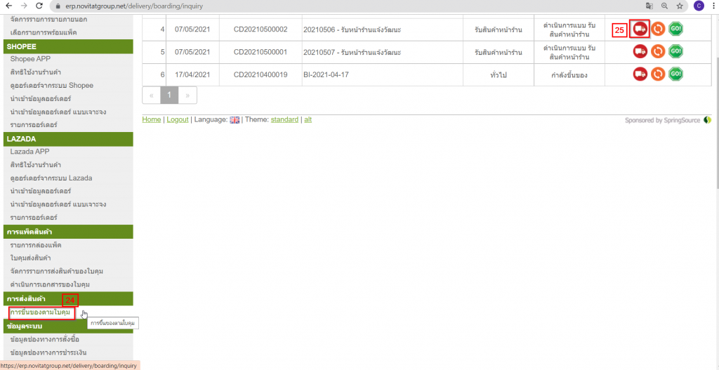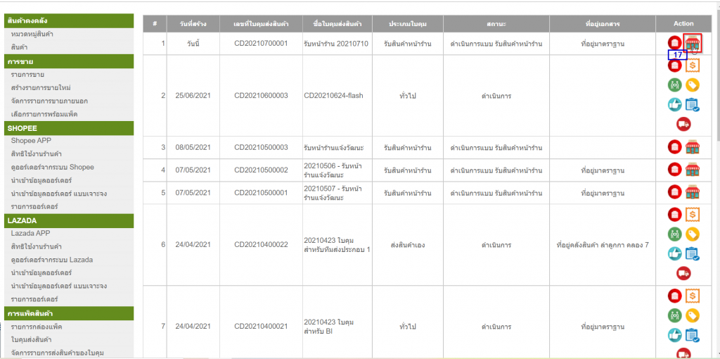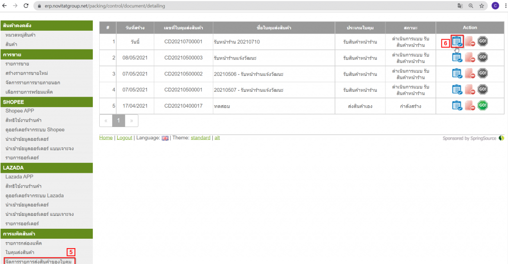 5. เข้าไปที่จัดการรายการส่งสินค้าของใบคุม