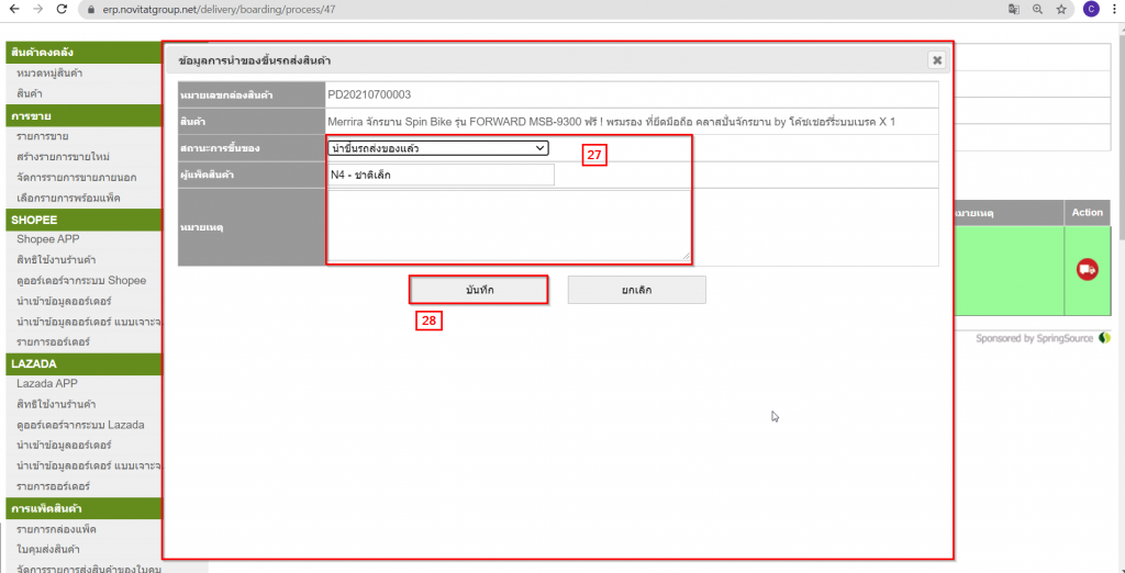 27. ใส่ข้อมูลสถานะการขึ้นของ ข้อมูลผู้แพ็คสินค้า