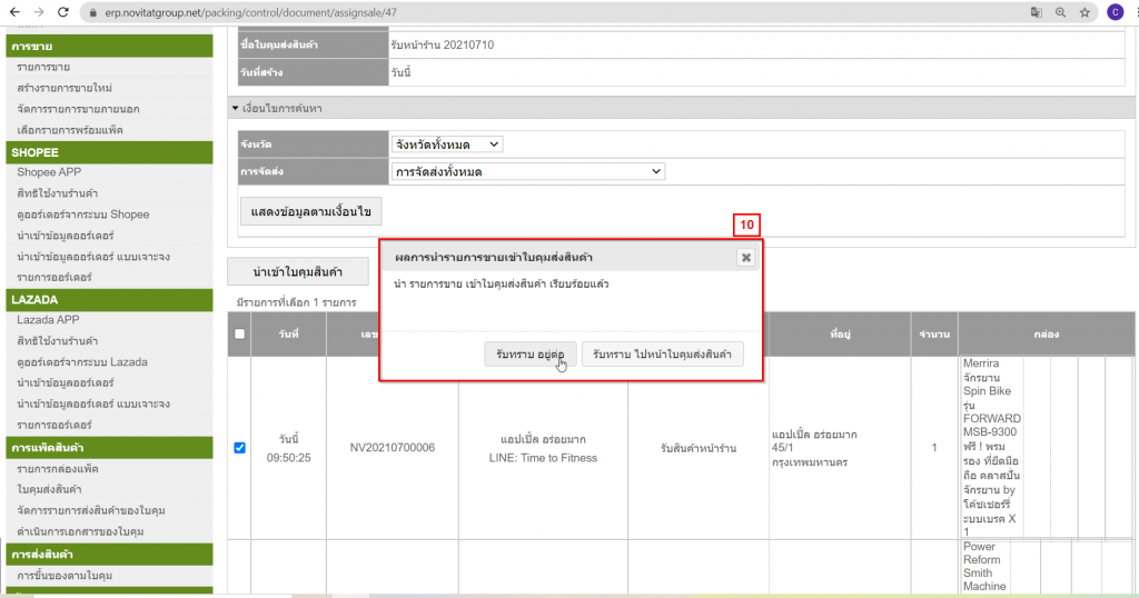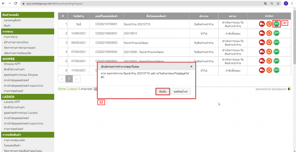 5. กดปุ่มยืนยัน มั่นใจแล้ว อย่าไปกลัว หลังจากนั้นคือขั้นตอนนำสินค้าเข้าใบคุม