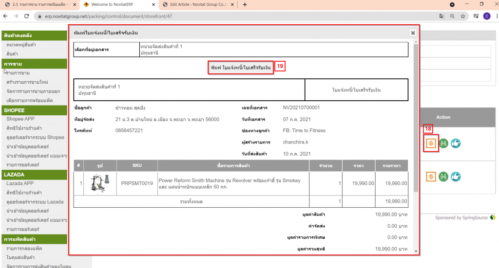 20. กดที่ไอคอน พิมพ์ ใบส่งสินค้า