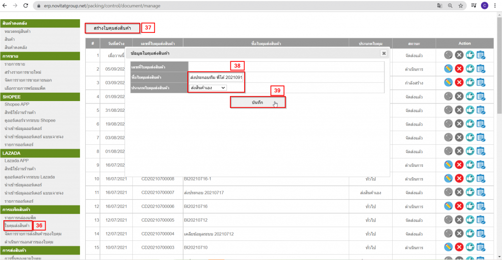 37. กดปุ่ม สร้างใบคุมส่งสินค้า